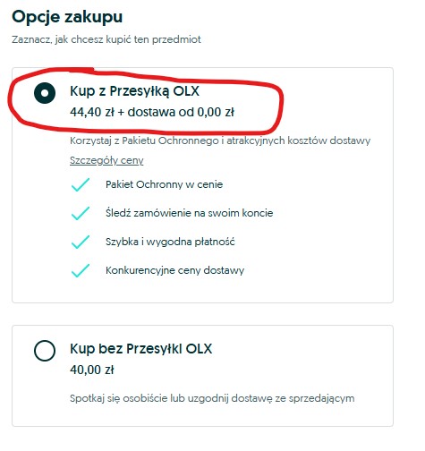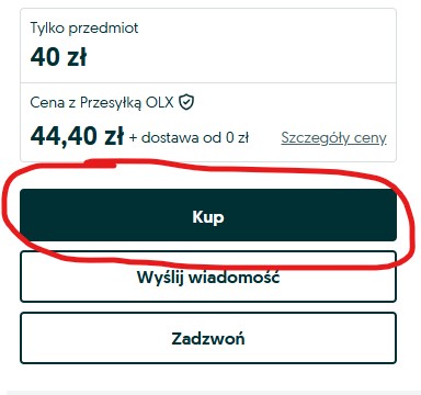 Zamówienie przedmiotu z OLX za pomocą przesyłek OLX jest łatwe i bezpieczne. Jeśli zainteresuje Cię jakiś przedmiot, to kliknij przycisk „kup” a następnie „kup z dostawą”. Pieniądze, które zapłacisz, będą przechowywane przez serwis OLX, dopóki nie potwierdzisz, że przesyłka, którą otrzymałeś, jest w porządku.